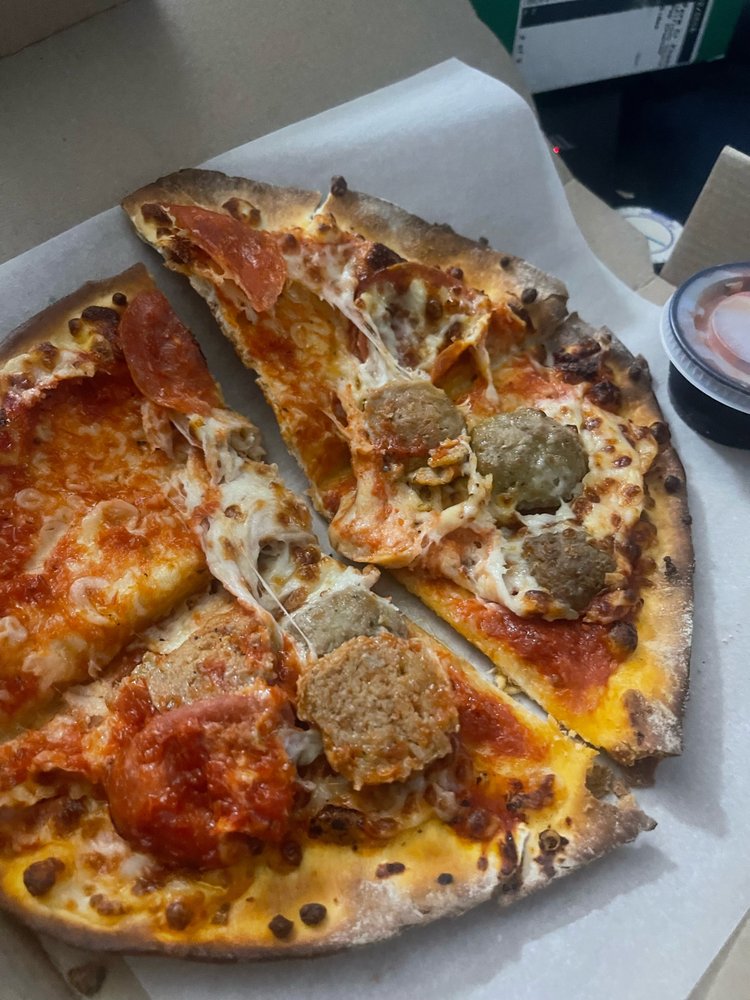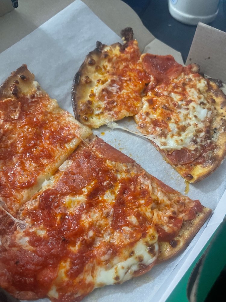 Pepperoni Pizza, Chzstx, Brownie & Drinks